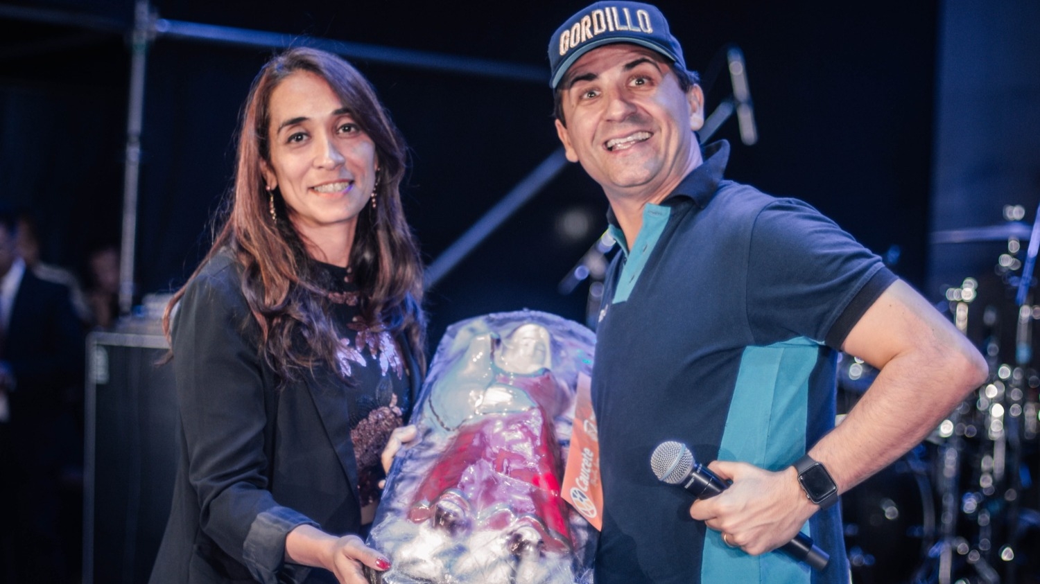 Sergio Galleguillo recibió regalos del público. FOTO: Gentileza Municipio de Caucete