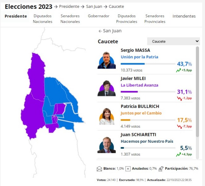 EN CAUCETE MAS DE 10 PUNTOS DE VENTAJA A FAVOR DE MASSA
