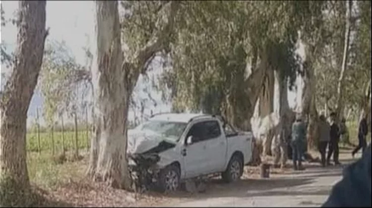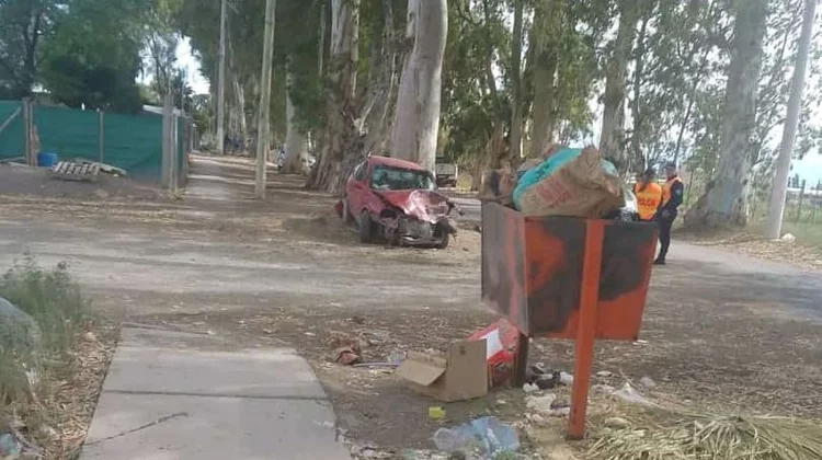 El auto quedó destrozado a la vera de la calle, mientras que la camioneta dio de lleno contra un frondoso eucalipto que se encuentra en la banquina, al costado de la calle.