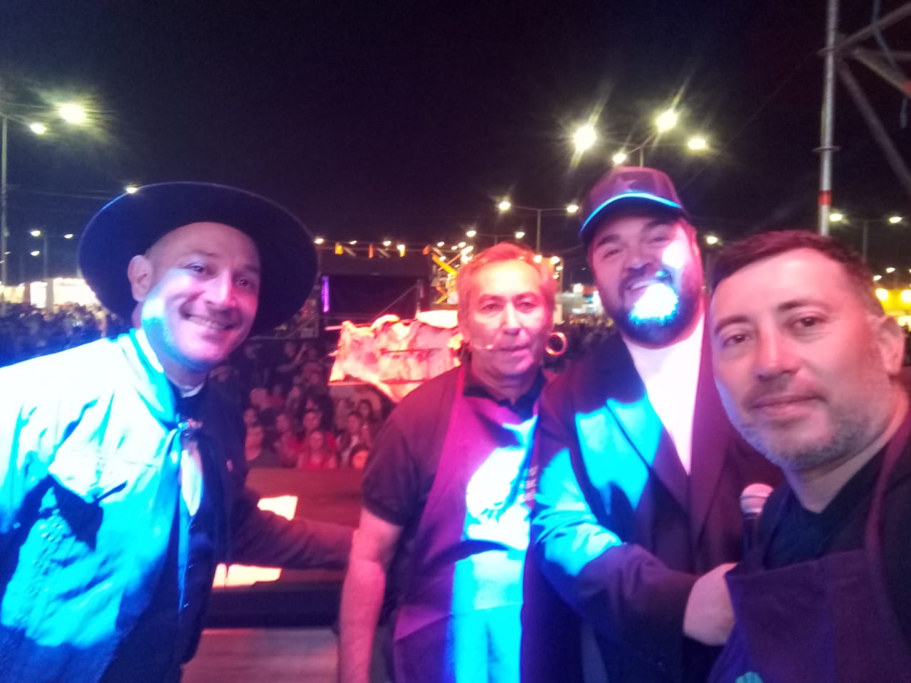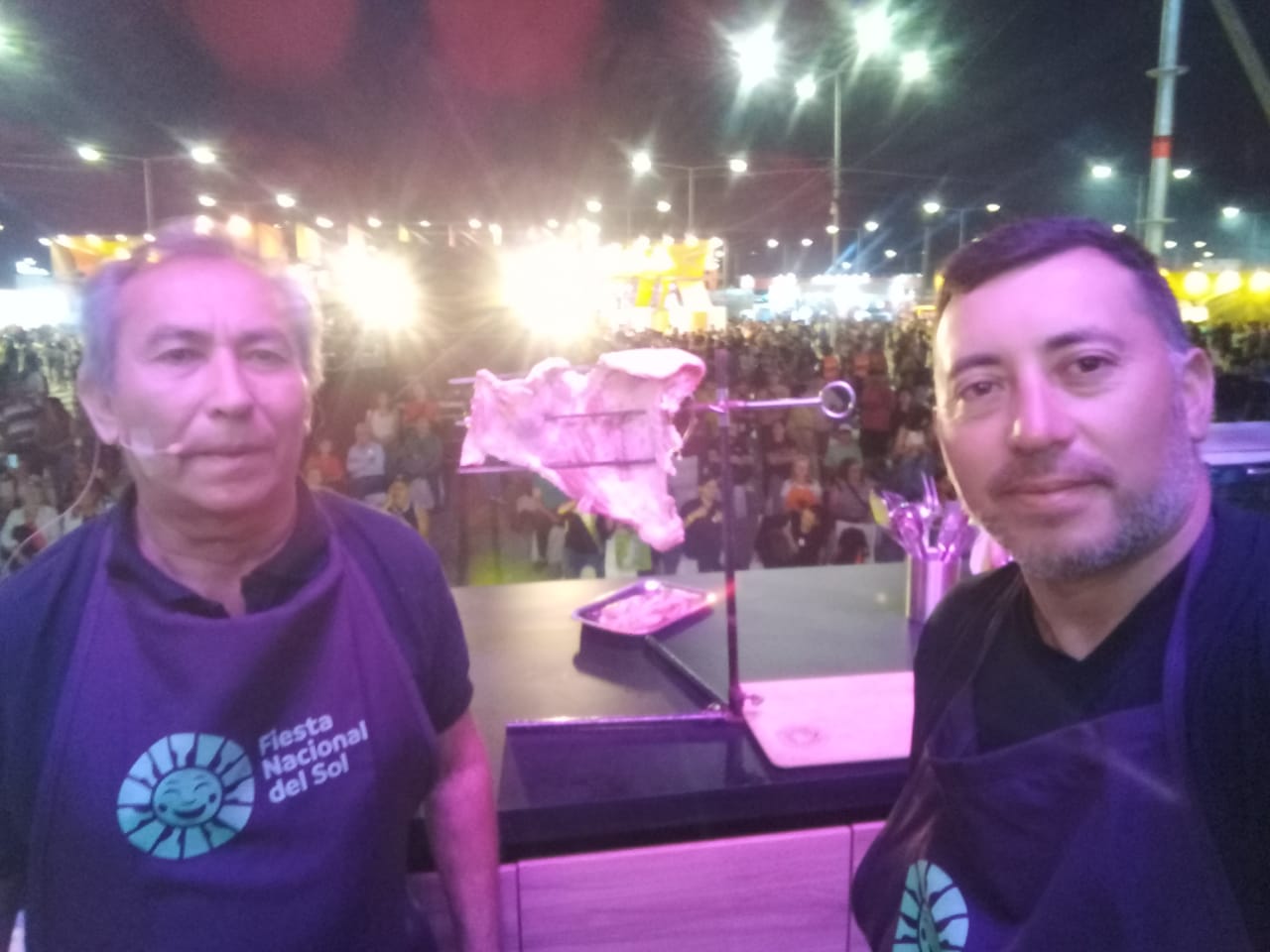 También probó punta de espalda sarmientina, a la llama. Hecha por los cauceteros Ruben Garro y Manuel Godoy. Los cauceteros ganaron el concurso del asador de Sarmiento y tambien el derecho de participar en la FNS.