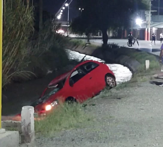 Un accidente vial en la intersección de Av. Benavidez y Greco, en el departamento de Santa Lucía. tuvo como protagonista a un joven de 18 años, quien conducía un Volkswagen Gol Trend de color rojo, cuando perdió el control de su vehículo y cayó al canal.