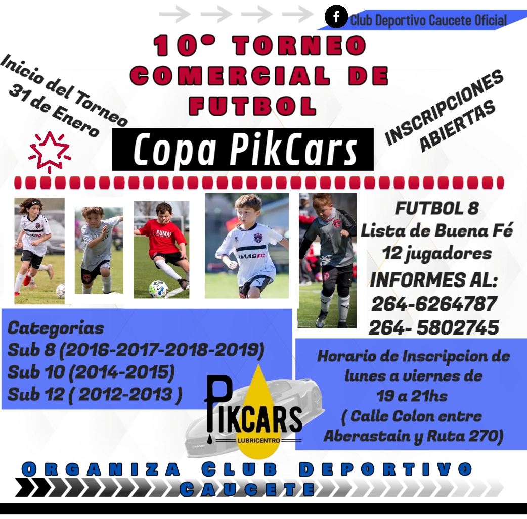 El flamante presidente del Club Deportivo Caucete, Lucas Moreta, charló con Radio Genesis para referirse a los detalles de la realización del 10º Campeonato Comercial de Futbol Infantil a llevarse a cabo en las instalciones de la institución a partir del 31 de enero. Conocé todos los detalles de quienes podran participar, hasta cuando estan abiertas las inscripciones, requisito para ser parte del torneo de verano mas importante de Caucete