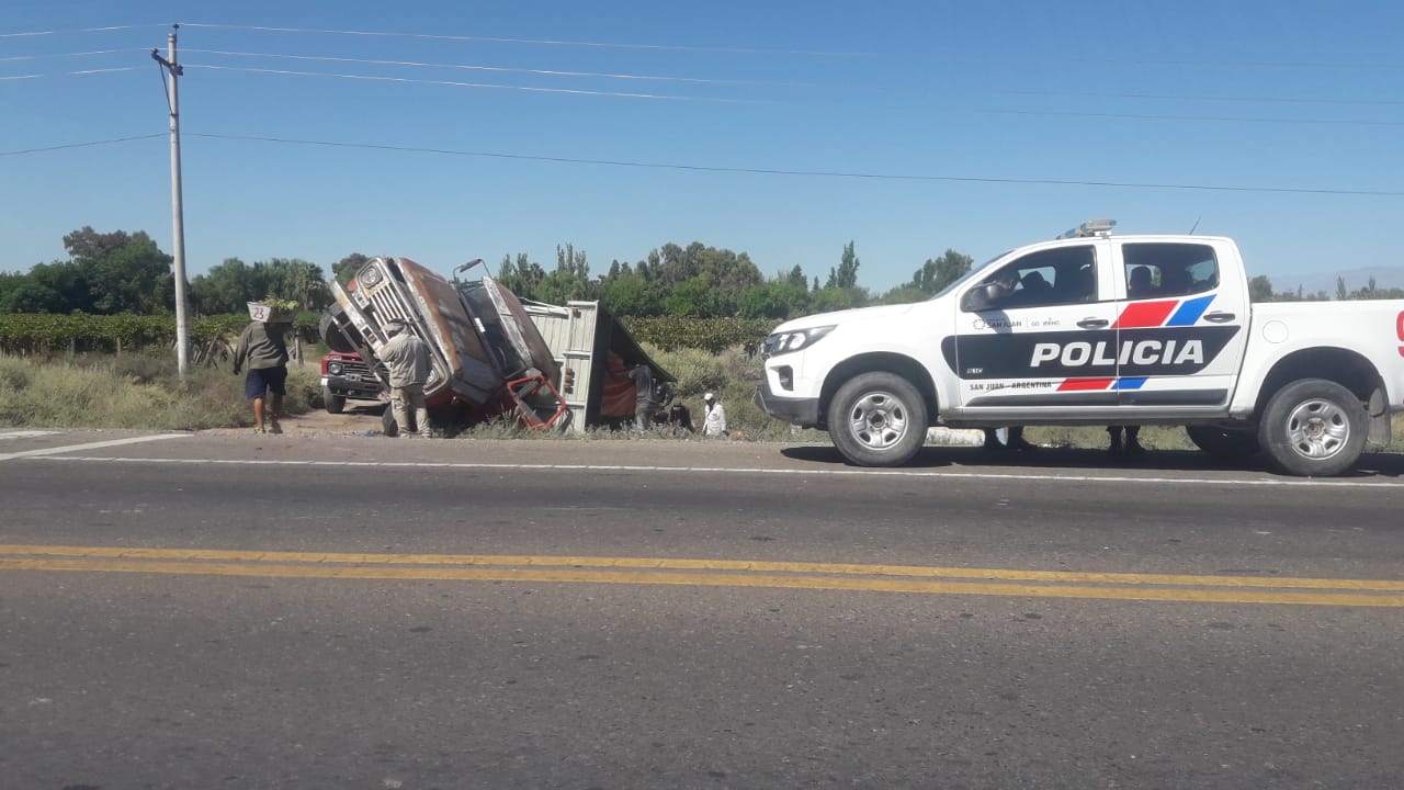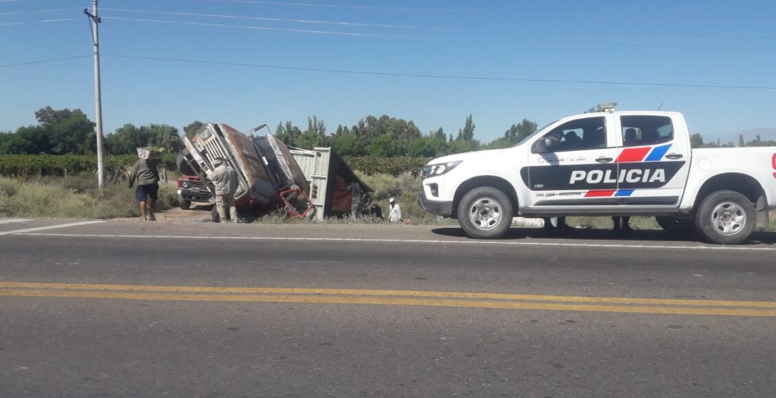 Durante la mañana de este viernes, sobre las 10, se registró un violento vuelco de un camión en la Ruta 20 a mts de calle La Plata, en Caucete.