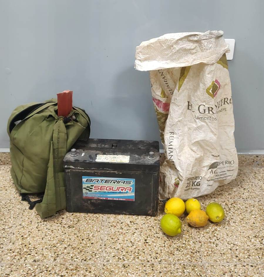 ¿Por qué? Un hombre de 31 años, propietario de la finca San Nicolás -ubicada en ese sitio-, manifestó que al ingresar al interior de la misma, visualizó al sujeto con efectos en su poder, siendo una batería de tractor de 110 amperes y una bolsa con 5 limones en su interior.