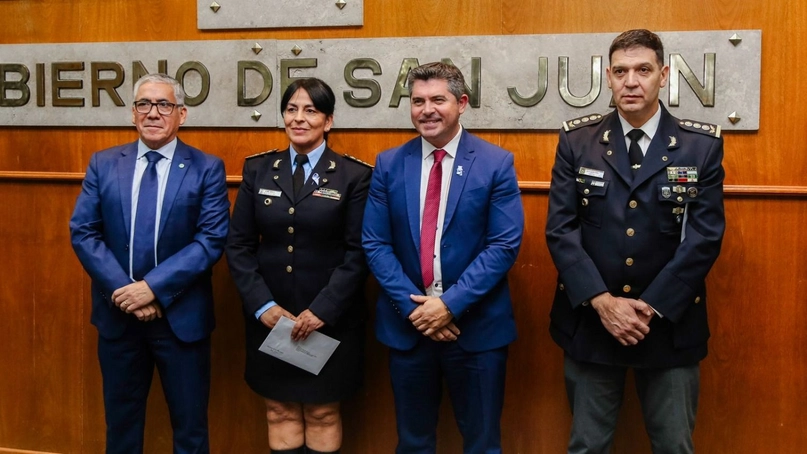 La ceremonia contó además con la presencia del Comisario General Retirado, Néstor Álvarez, quien actualmente ocupa el cargo de Jefe de la Policía de San Juan, así como del secretario General de la Gobernación, Emilio Achem, y otros ministros y secretarios de Estado del Ejecutivo provincial. La participación de estos referentes refleja la importancia institucional del acto y el respaldo político a las nuevas autoridades en seguridad.