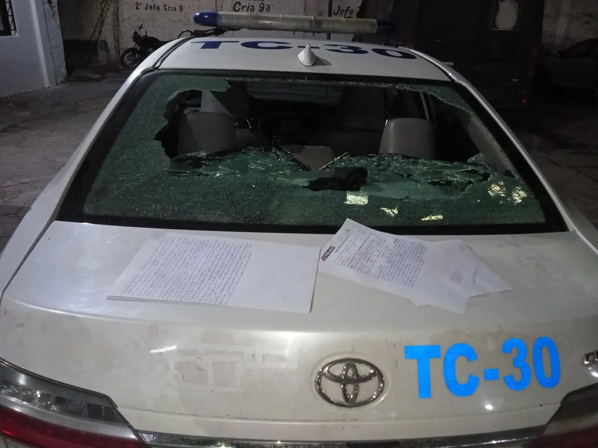 Durante la persecución, los sospechosos intentaron darse a la fuga y arrojaron una piedra contra un móvil policial, provocando daños en la luneta trasera del patrullero.