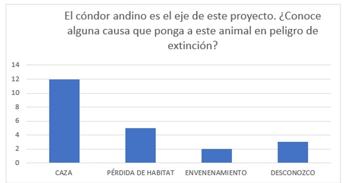 Partiendo del resultado de las encuestas realizadas dejó en evidencia la falta de conocimiento sobre el tema. Era necesario crear conciencia sobre la preservación del Condor andino y disparar en otros esas ganas de investigar y leer sobre el tema, ya que en el ecosistema andino no solo el cóndor está en grave peligro de extinción.