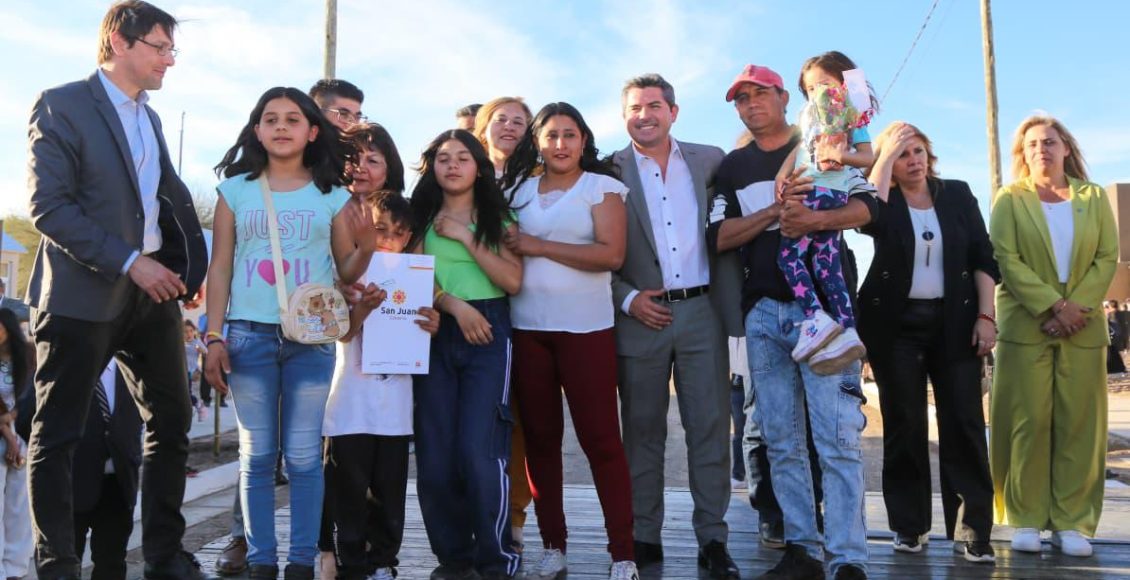 El gobernador Marcelo Orrego encabezó este lunes la entrega de 27 viviendas del barrio Ceferino Namuncurá, ubicado en el departamento de San Martín. Este significativo hecho es el resultado de un esfuerzo conjunto entre el Gobierno provincial y la Municipalidad de San Martín, aportando el Instituto Provincial de la Vivienda (IPV) los recursos para completar la urbanización necesaria para hacer realidad el sueño de la casa propia para las familias sanmartinianas.