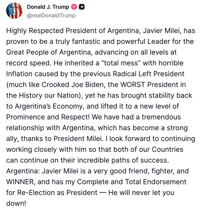 Según detalló Bessent, la administración norteamericana está preparada para otorgar un “significativo” crédito stand-by a través del Fondo de Estabilización de Cambios.