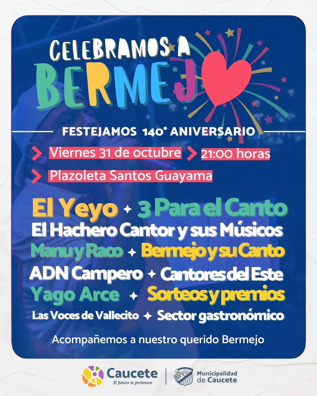 Raul Ernesto Chavero, vocalista del Duo » Manu y Raco», charló con Radio Genesis, para referirse a la actuación de esta noche en el marco del 140º Aniversario de Bermejo, un distrito caucetero, al que esta muy ligado por afectos y familiares. Esta noche, estará compariendo escenario con 3 para El Canto y El Yeyo,entre otros. Nos adelantó detalles del s how y de como van caminando en este,camino inciado no hace mucho tiempo junto con Manuel Torres,haciendo musica para toda la familia.