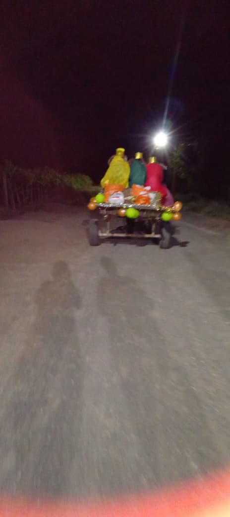 Los vecinos captaron el momento de la llegada de los Reyes, quienes traian la sirena encendida, el rebuznar del burro, lo que provocó admiracion,risas y alegria a los presentes.
