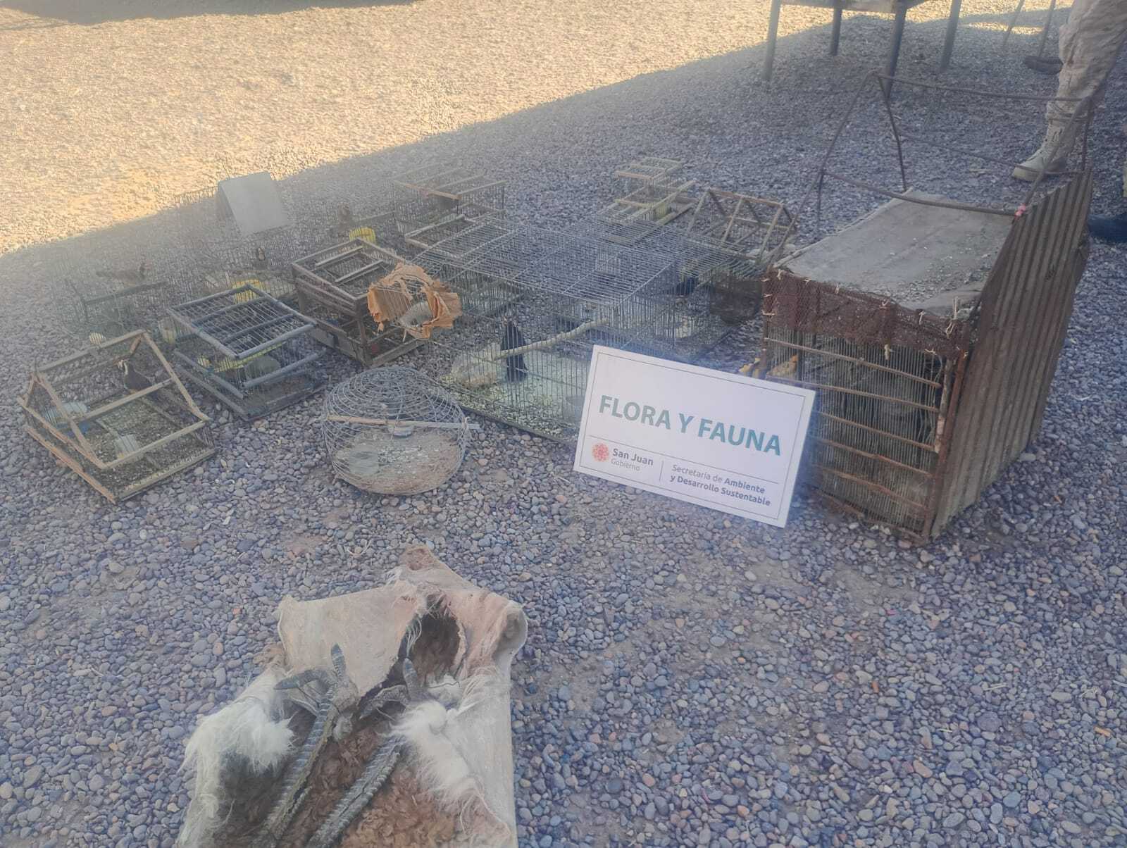 Además del rescate de ejemplares vivos, los agentes incautaron restos de fauna cuya tenencia está estrictamente prohibida por ley, incluyendo un cuero y una cabeza de guanaco, junto con dos patas de avestruz, elementos que complican la situación legal del infractor.