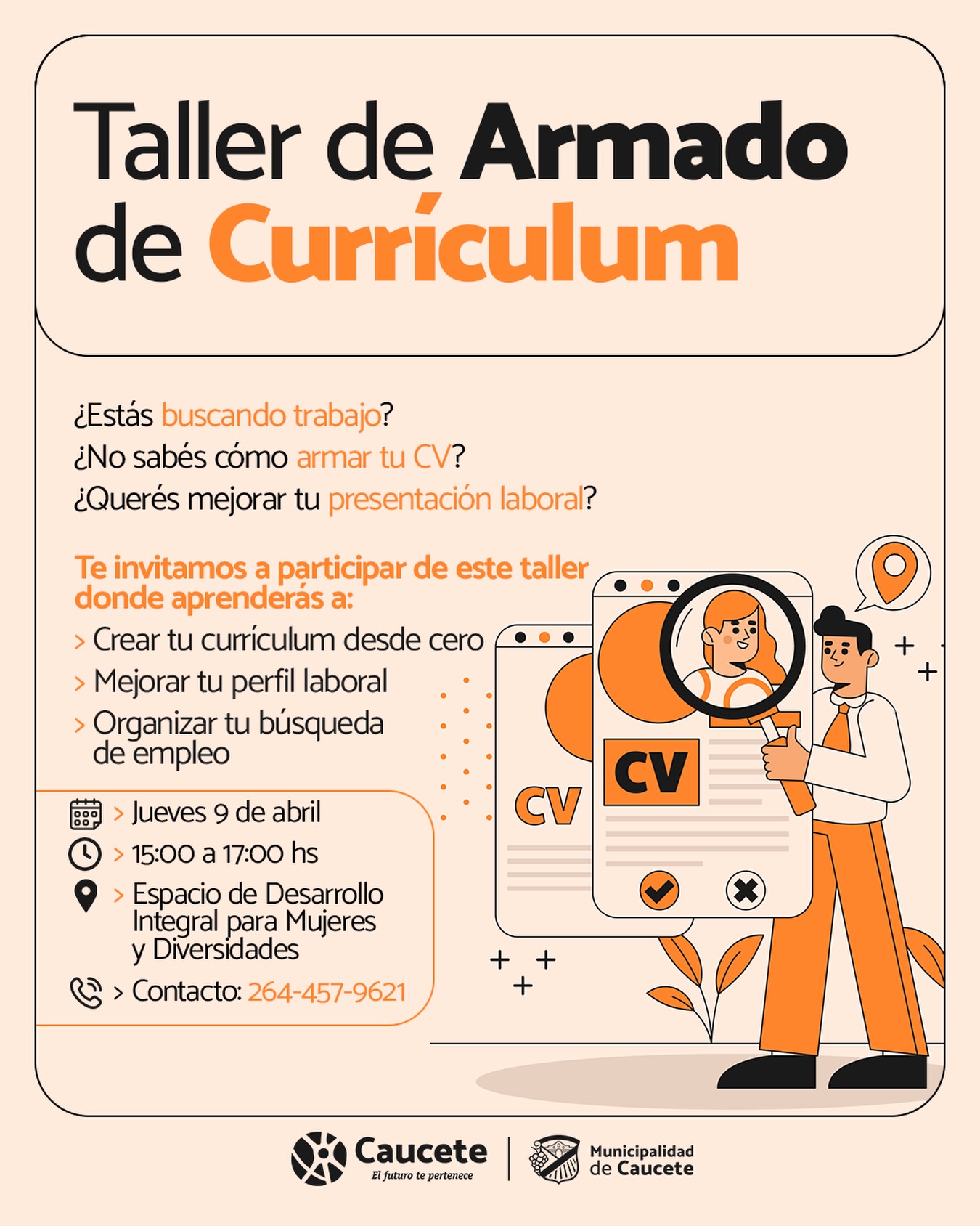 📌 ¡Sumate! No dejes pasar esta oportunidad de obtener herramientas reales que te acerquen a tu próximo empleo. Para inscripciones o más información, los interesados pueden comunicarse al contacto: 264-457-9621.