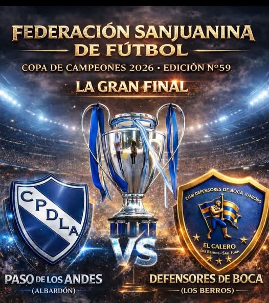 DEFENSORES DE BOCA Y PASO DE LOS ANDES, DEFINEN LA COPA DE CAMPEONES 2026